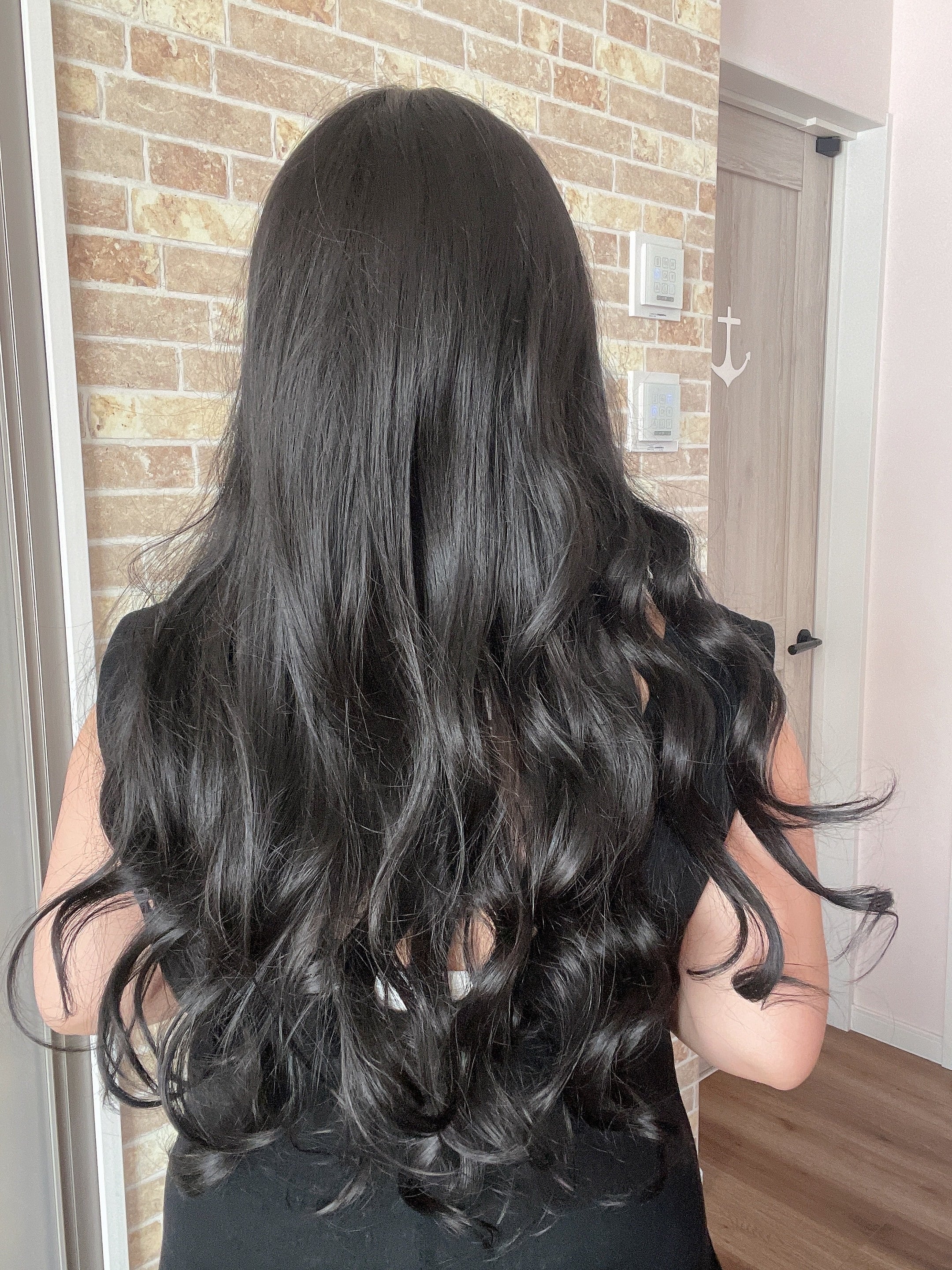 ブラック★パッツン前髪ロングウェーブウィッグ
